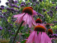 The close up photos here are Echinacea, Verbena, Sea holly, and Aster.