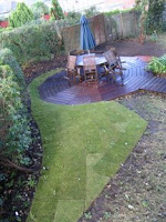 But to really make the area sing out the soft landscaping was undertaken by us, and whilst we were at it we installed some decking steps to lead the users on through and onto a lower level of garden.