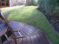 The customers wanted to utilise the area with new grass and incorporate wild plants, and bulbs. So we set to planting over 300 plugs of native plants, from daisys and primroses for the lawn to foxgloves and sweet peas for the banks. The aim was not only to naturally contrast with the formality of the hard deck, but also to be naturally self sustaining. Each plant will attract a huge array of wildlife, once established, allowed to flower and seed or fruit. In time the area will literally buzz with life. And maintaining this area should be less labour intensive than a well manicured lawn, as it will be allowed to grow slightly longer, and will not need feeding, and be less thirsty.