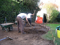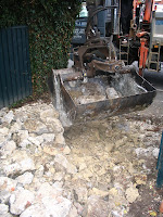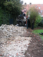 After clearing the area of over grown plants, and breaking and clearing the old broken concrete drive we excavated deeply to create a permeable drainage system.